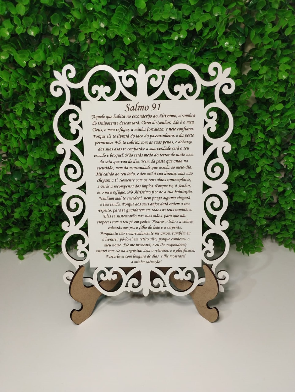 Transforme sua decoração com fé e estilo! Leve para seu lar um toque de espiritualidade com o nosso quadro personalizado com Salmo, feito com gravação a laser em MDF branco de alta qualidade.